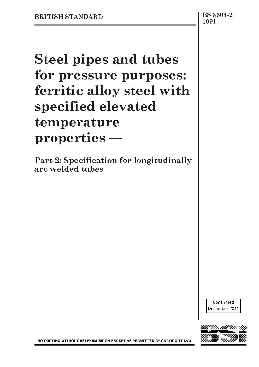 Steel pipes and tubes for pressure purposes: ferritic alloy steel with specified elevated temperature properties. Specification longitudinally arc welded
