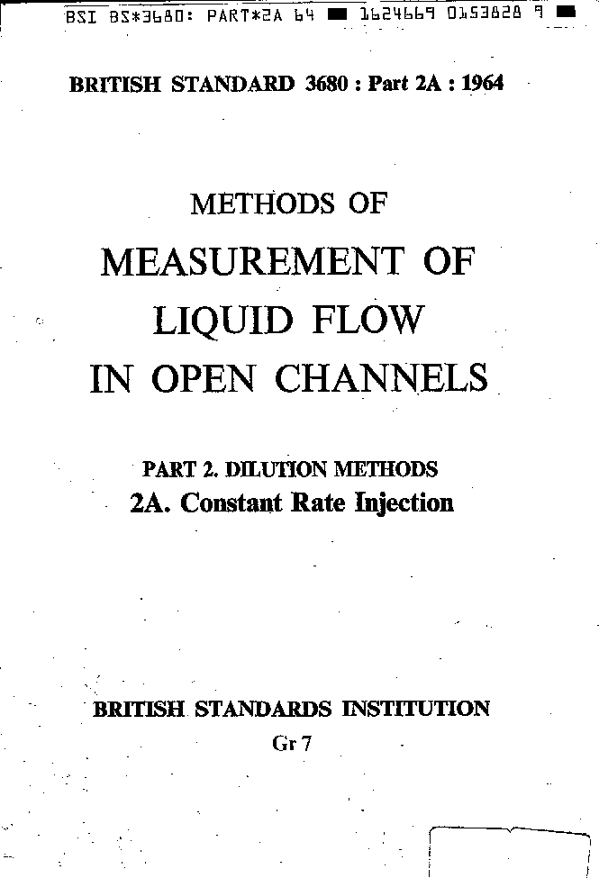 Water;Ground water;Sampling methods;Statistical methods of analysis;Errors;Formulae (mathematics);Samples;Analysis of variance;Liquid flow;Test equipment;Surface water;Tracer methods;Channel flow;Measurement characteristics;Mathematical calculations;Flow measurement;Flow