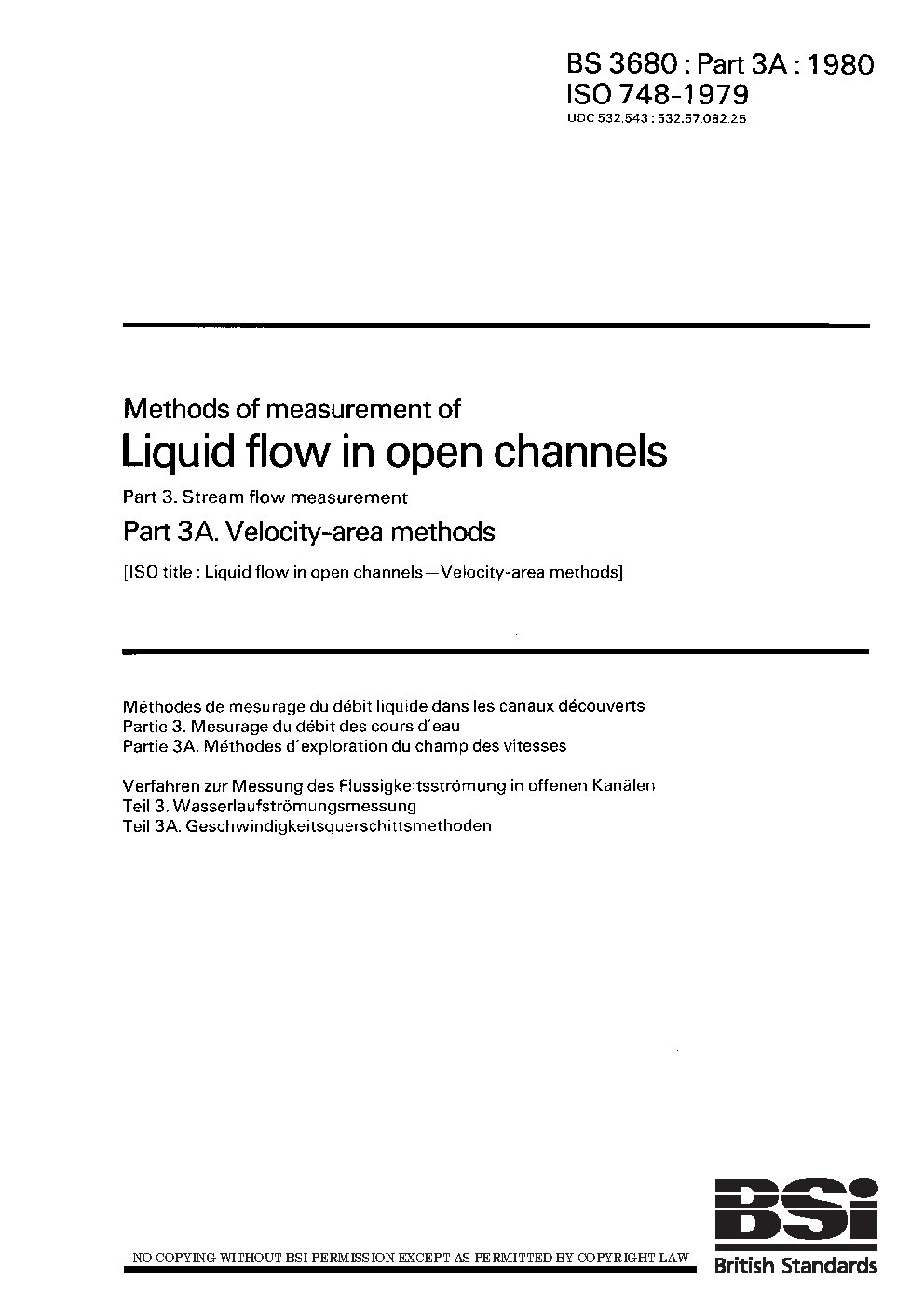 Measurement of liquid flow in open channels. Stream measurement Velocity-area methods