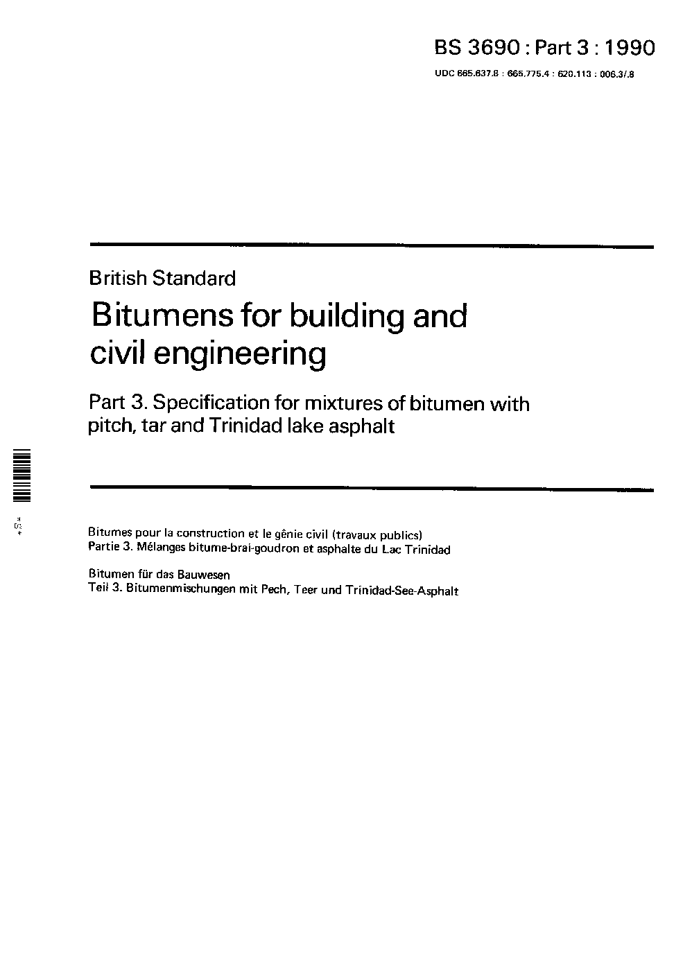 Bitumens for building and civil engineering Specification mixtures of bitumen with pitch, tar Trinidad lake asphalt