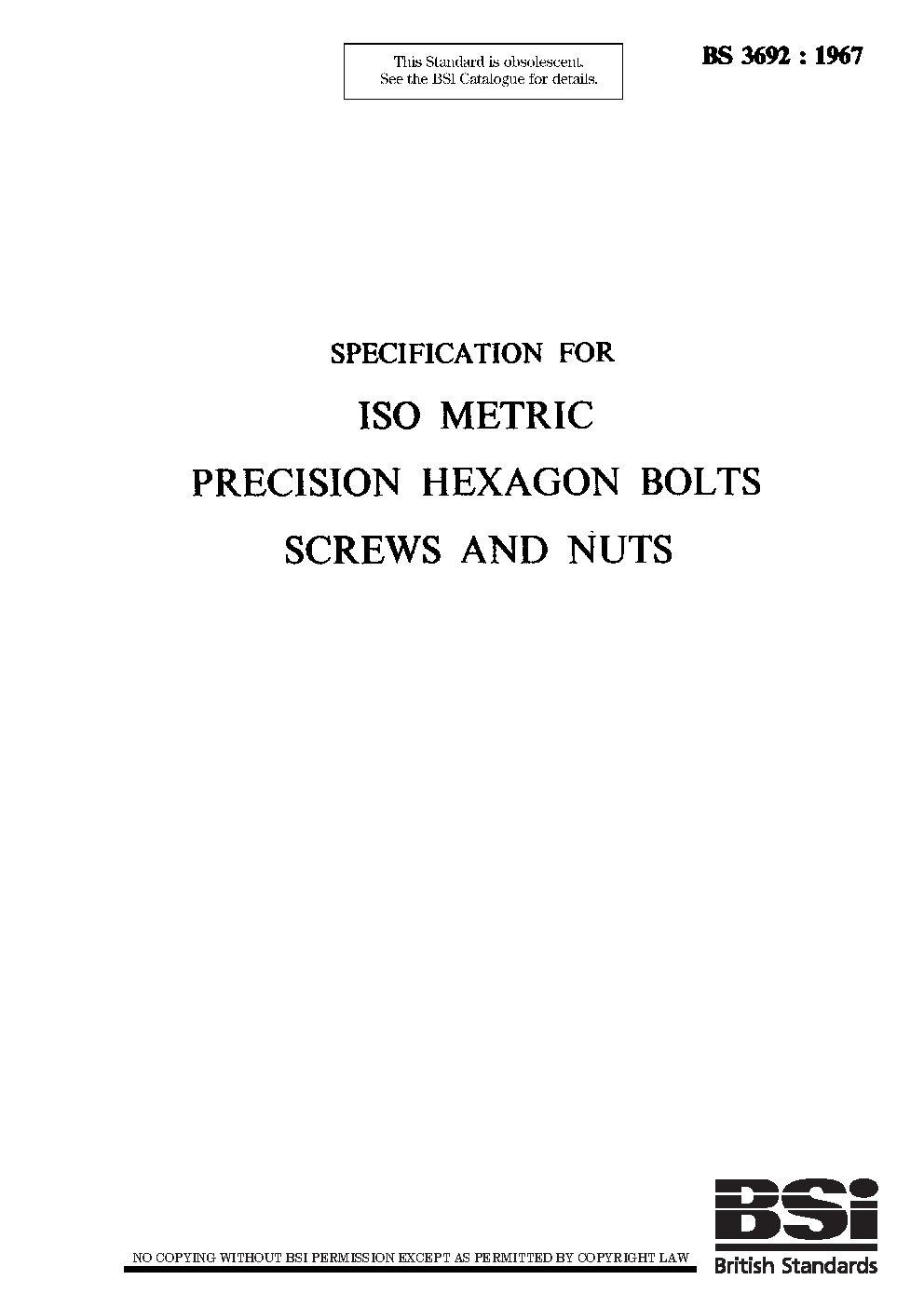 ISO metric precision hexagon bolts, screws and nuts. Specification