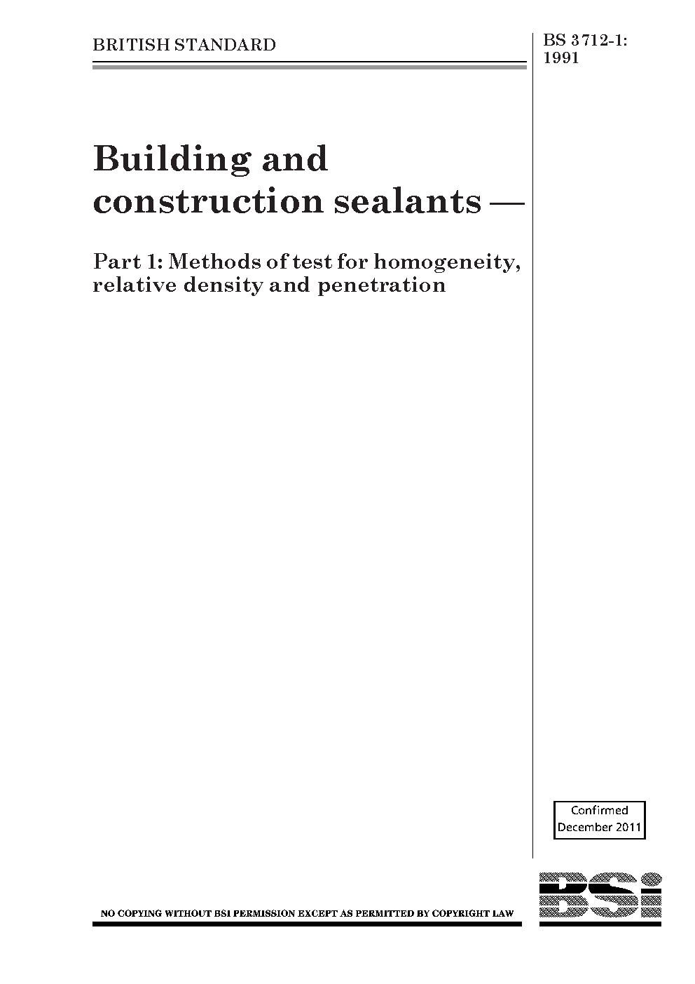 Building and construction sealants Methods of test for homogeneity, relative density penetration