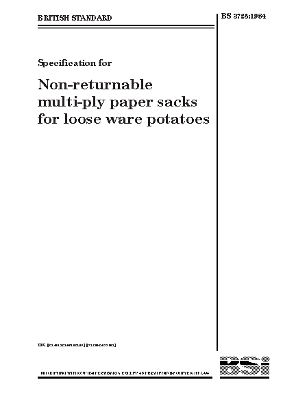 Specification for non-returnable multi-ply paper sacks for loose ware potatoes