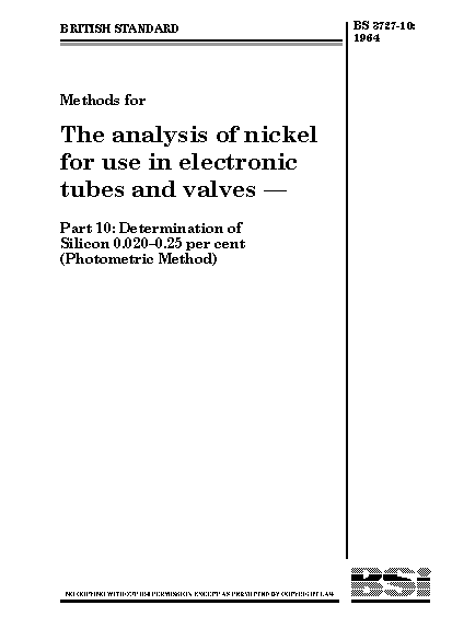 Methods for the analysis of nickel use in electronic tubes and valves Determination silicon 0.020-0.25 per cent (photometric method)