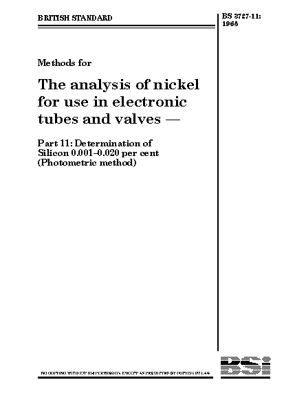 Methods for the analysis of nickel use in electronic tubes and valves Determination silicon 0.001-0.020 per cent (photometric method)