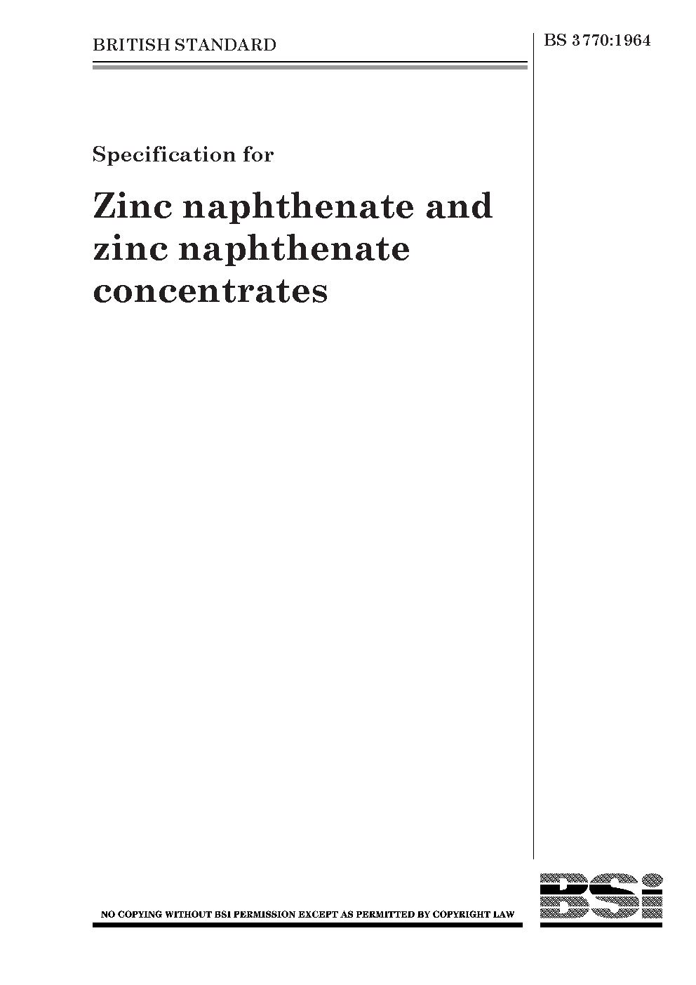 Specification for zinc naphthenate and zinc naphthenate concentrates