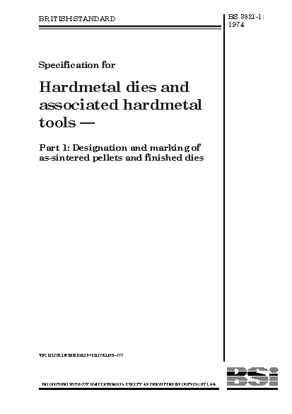 Specification for hardmetal dies and associated tools Designation marking of as-sintered pellets finished