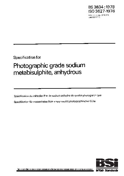 Specification for photographic grade sodium metabisulphite, anhydrous