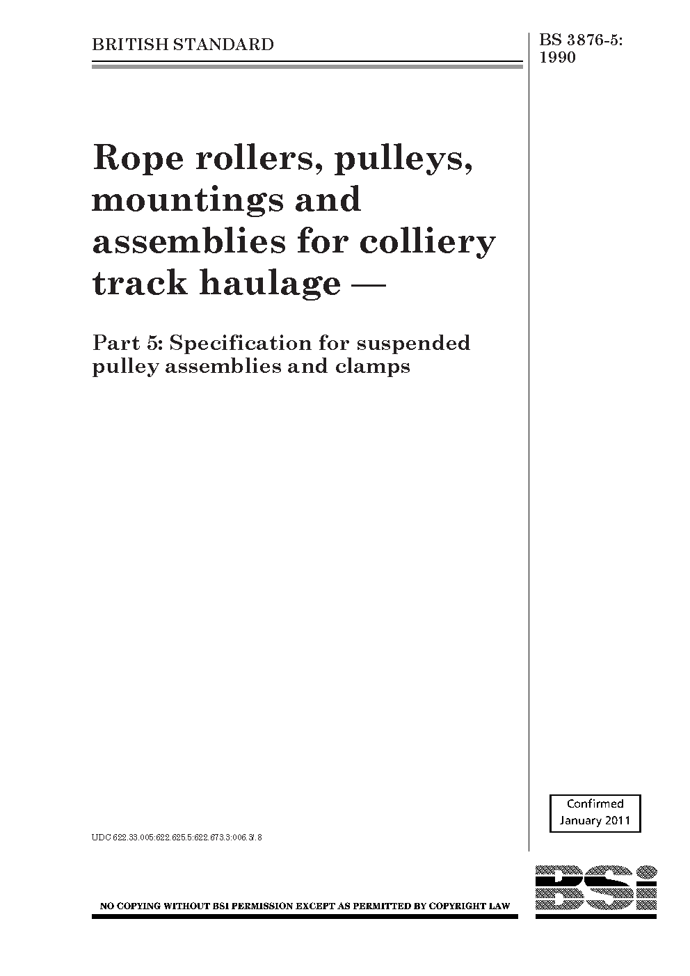 Rope rollers, pulleys, mountings and assemblies for colliery track haulage Specification suspended pulley clamps