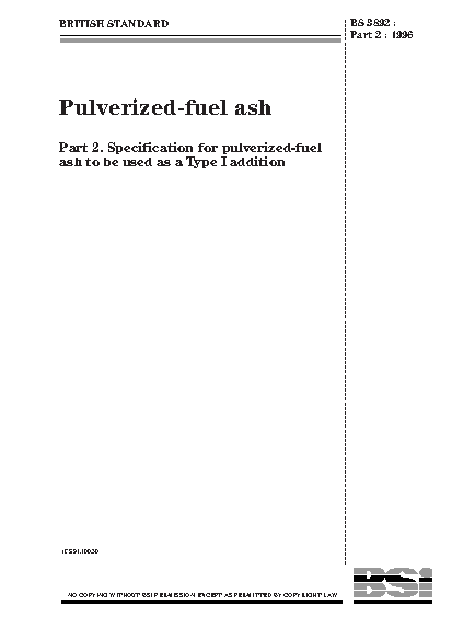 Pulverized-fuel ash Specification for pulverized-fuel to be used as a Type I addition