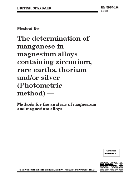 Methods for the analysis of magnesium and alloys Determination manganese in containing zirconium, rare earths, thorium and/or silver (photometric method)