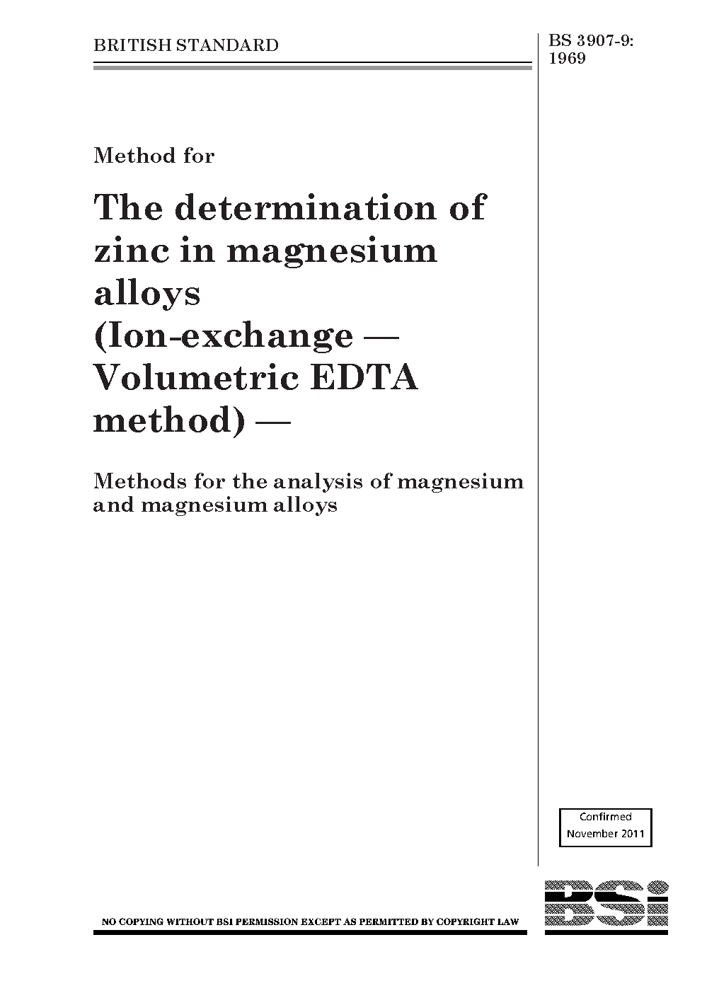 Methods for the analysis of magnesium and alloys Determination zinc in (ion-exchange-volumetric EDTA method)