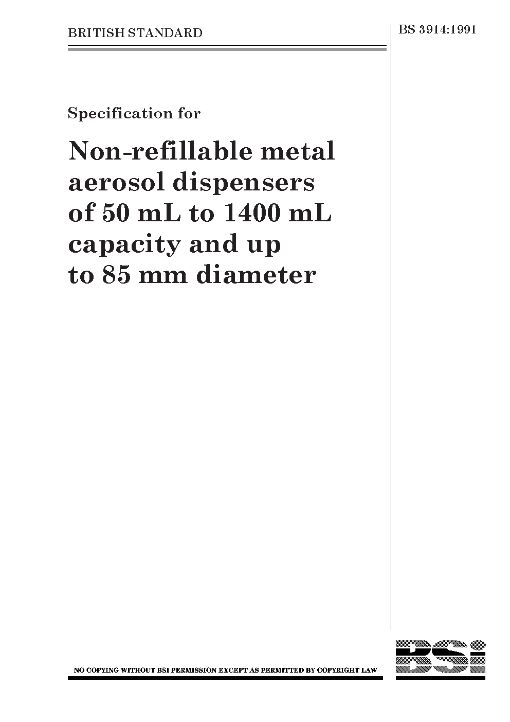 Specification for non-refillable metal aerosol dispensers of 50 ml to 1400 ml capacity and up to 85 mm diameter