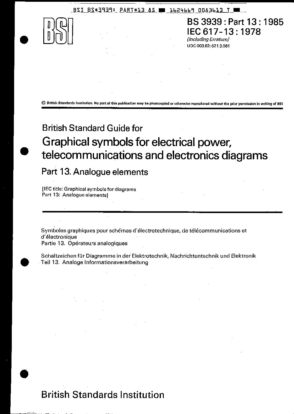 Guide for graphical symbols electrical power, telecommunications and electronics diagrams Analogue elements