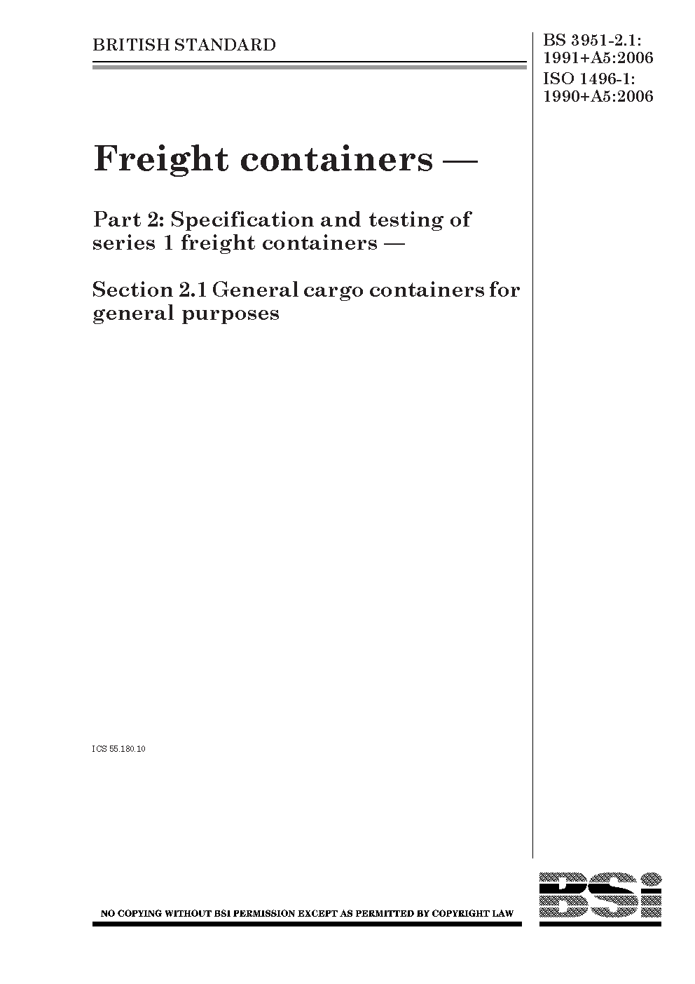 Freight containers. Specification and testing of series 1 freight containers. General cargo containers