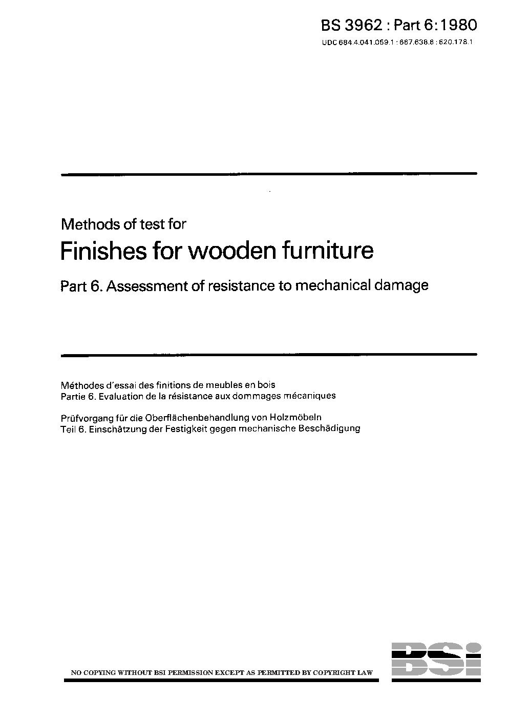 Clear finishes for wooden furniture. Resistance to mechanical damage