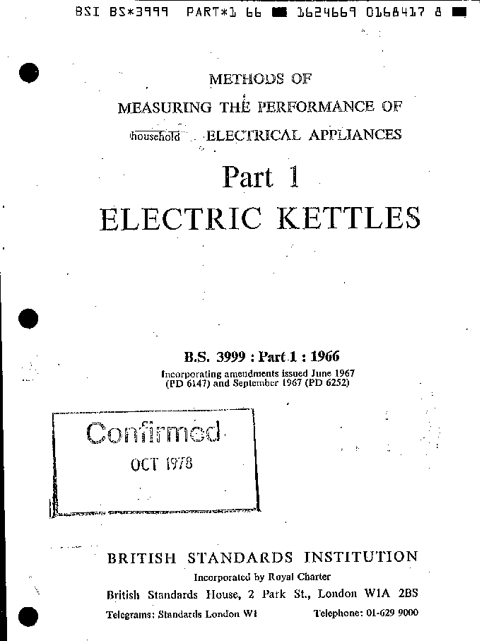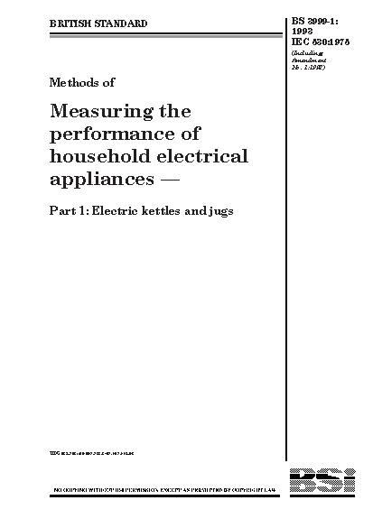 Methods of measuring the performance household electrical appliances Electric kettles and jugs