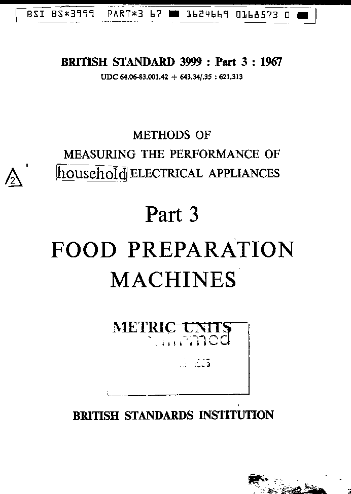 Methods of measuring the performance household electrical appliances Food preparation machines