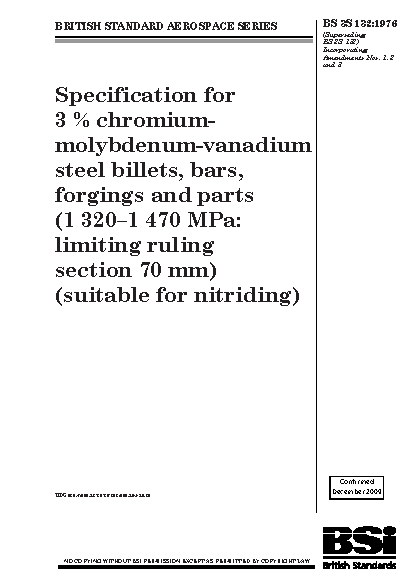 Chromium steels;Hardness;Aircraft components;Chemical composition;Alloy steels;Molybdenum steels;Vanadium steels;Steels;Nitriding steels;Mechanical properties of materials;Low-alloy steels;Designations;Forgings;Nitriding;Bars (materials);Billets;Air transport engineering;Heat treatment;Tensile strength
