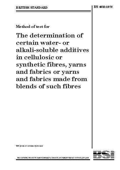 Size-material determination (textiles);Man-made fibres;Yarn testing;Cloth;Regenerated cellulose fibres;Cellulose ester fibres;Solvent extraction methods;Textile technology;Gums;Cotton;Textile testing;Cotton fibres;Fibre testing (textiles);Yarn;Viscose;Starches;Synthetic fibres;Chemical tests (textiles);Kaolin;Textile fibres