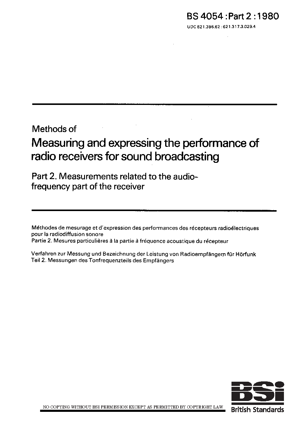 Methods of measuring and expressing the performance radio receivers for sound broadcasting Measurements related to audio-frequency part receiver
