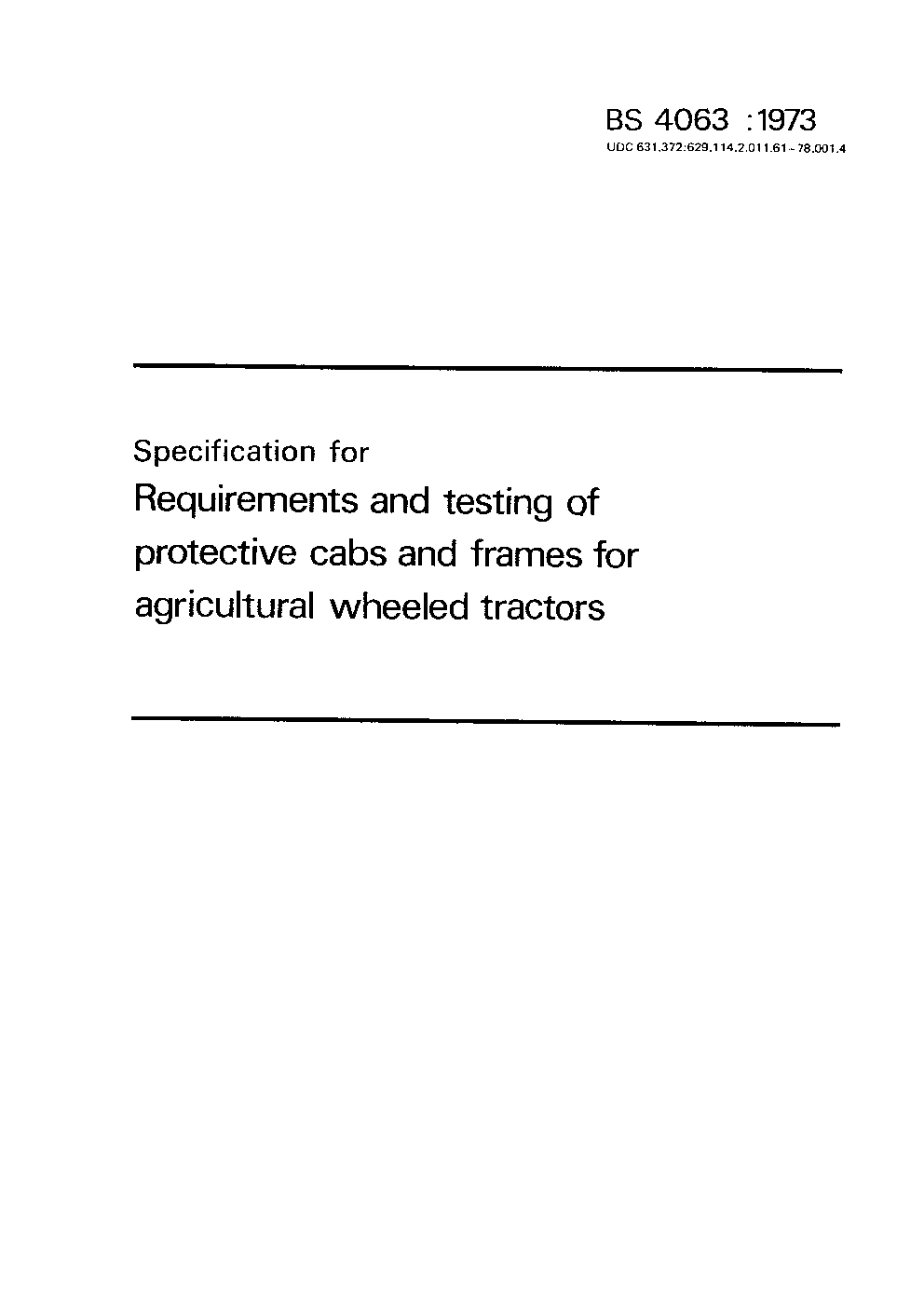 Specification for requirements and testing of safety cabs and safety frames for agricultural wheeled tractors