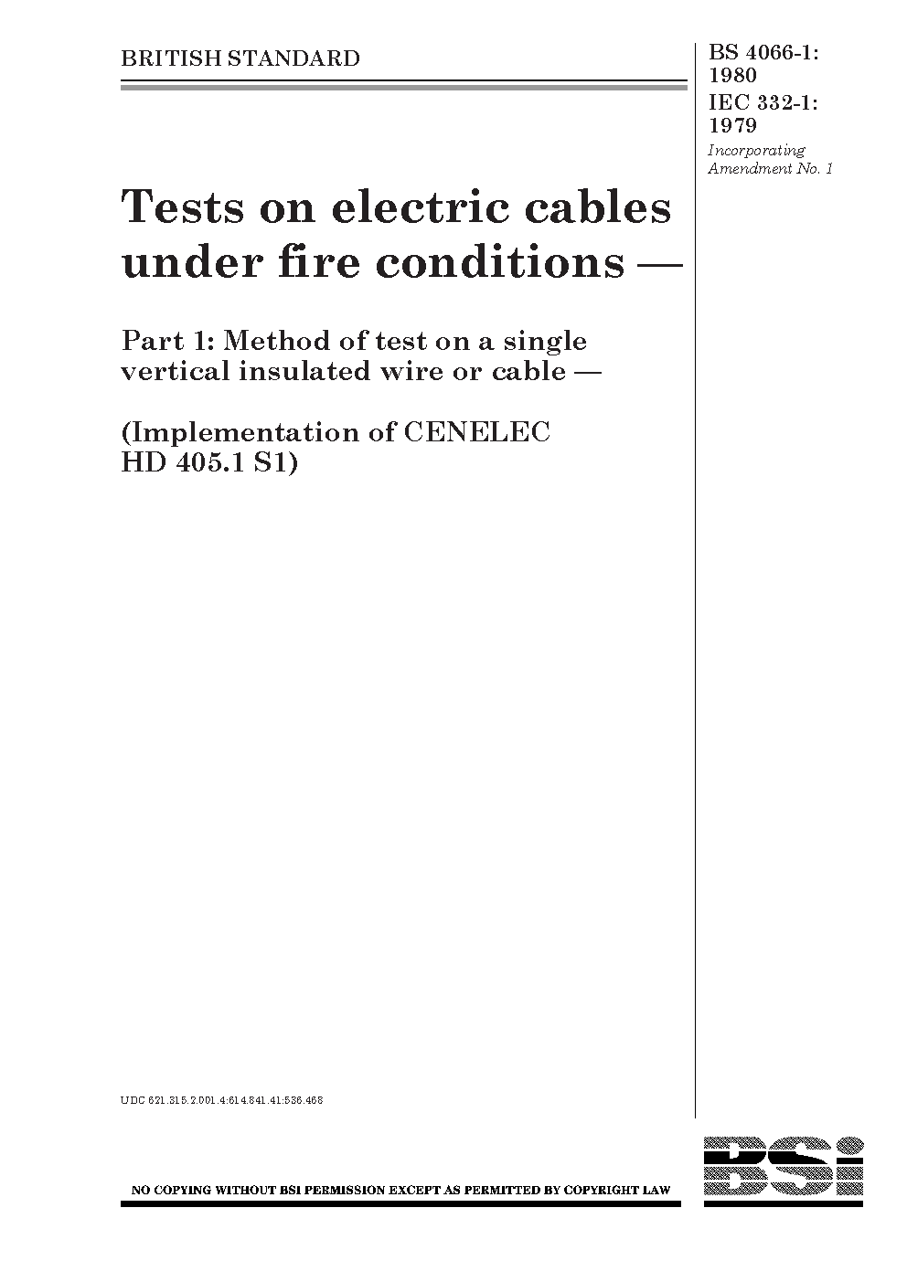 Tests on electric cables under fire conditions Method of test a single vertical insulated wire or cable