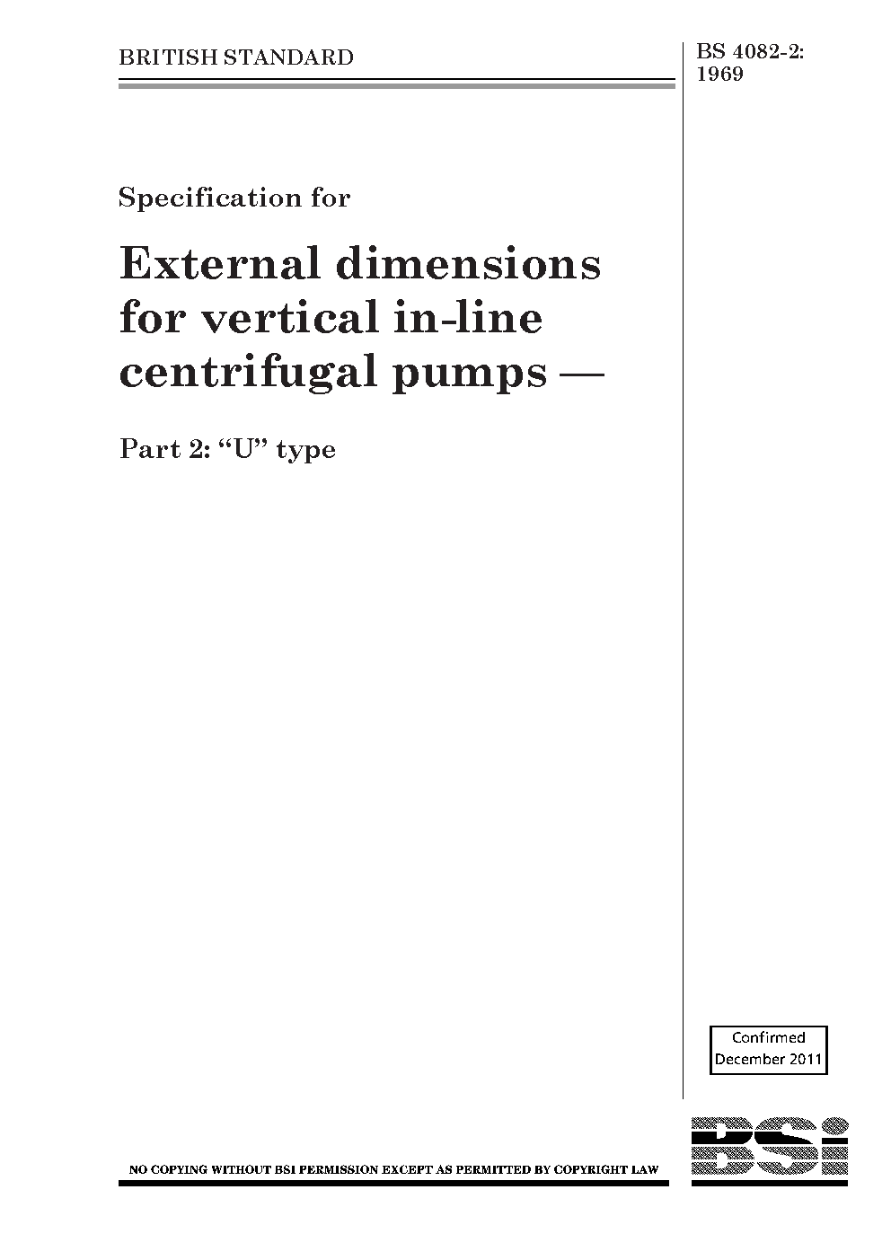 Specification for external dimensions vertical in-line centrifugal pumps 'U' Type