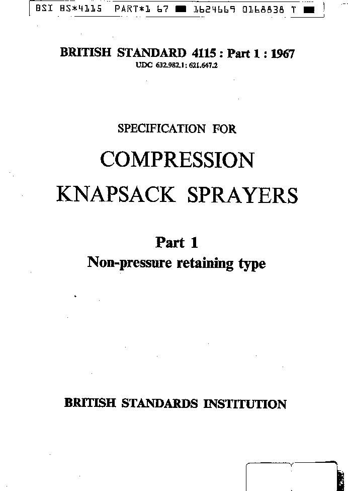 Specification for compression knapsack sprayers Non-pressure retaining type