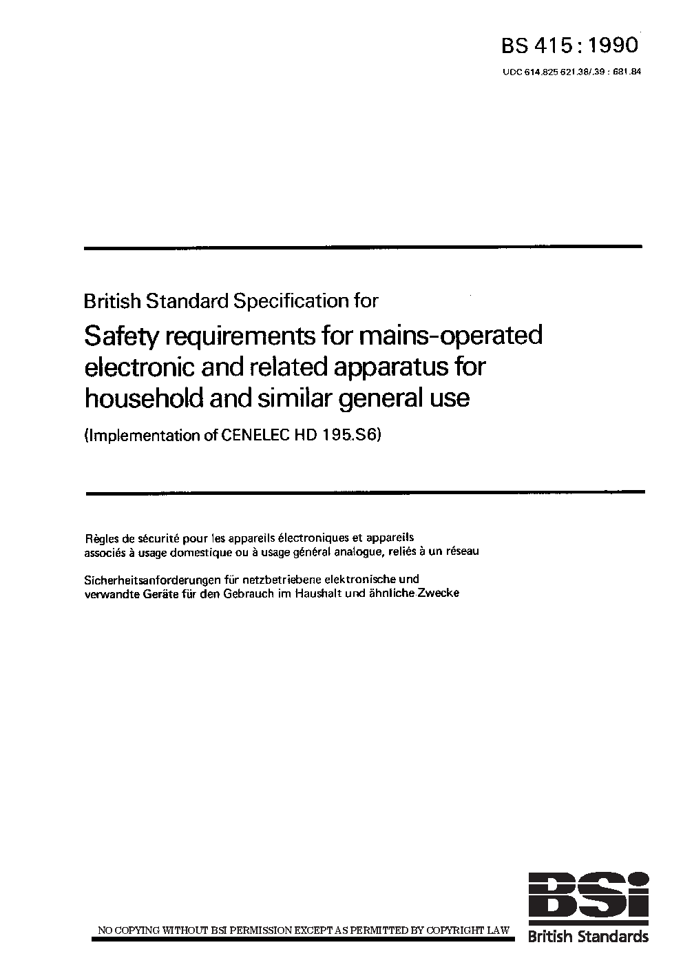 Specification for safety requirements for mains-operated electronic and related apparatus for household and similar general use