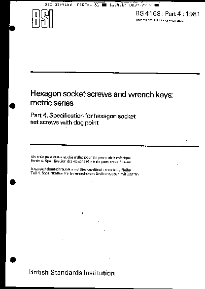 Hexagon socket screws and wrench keys: metric series Specification for hexagon set with dog point