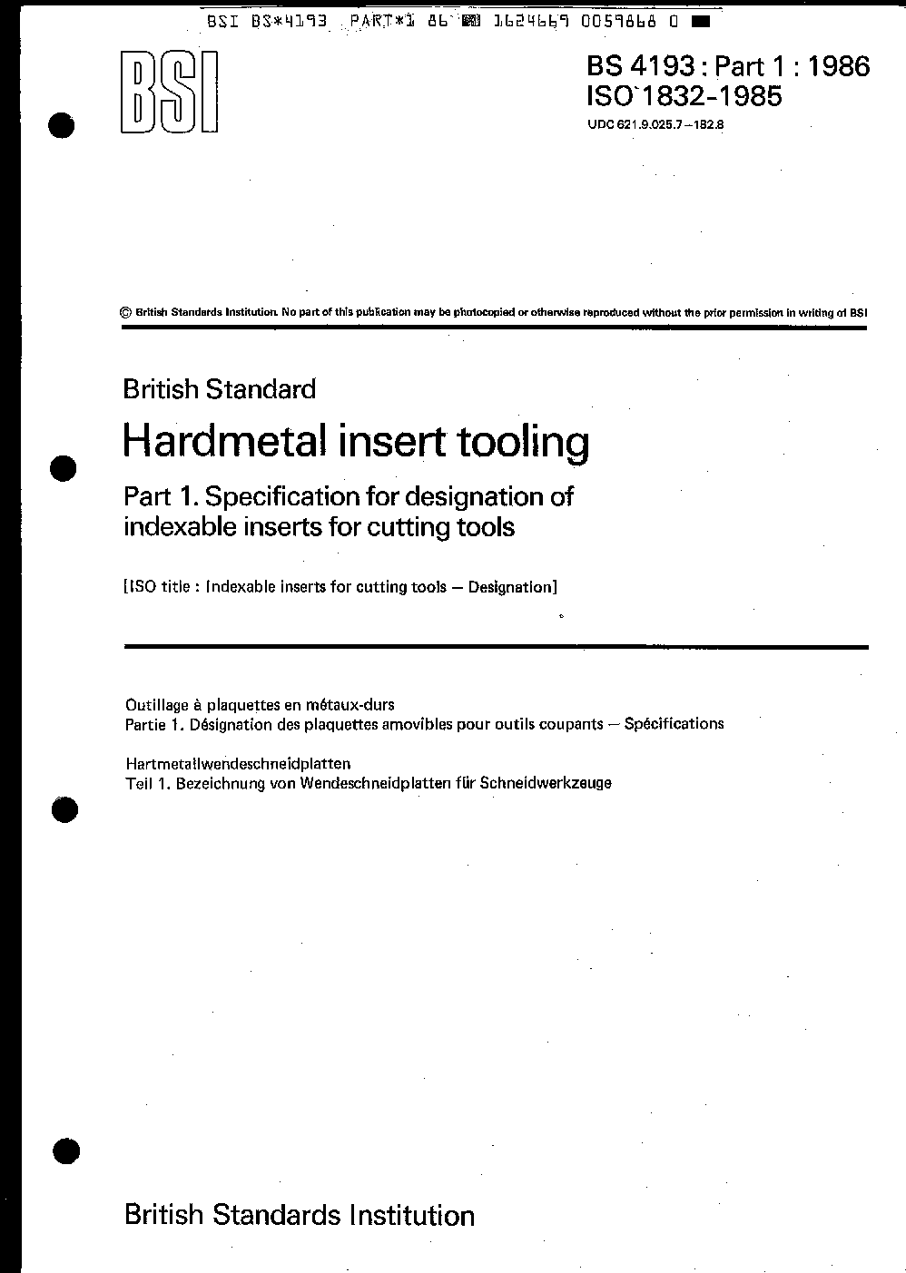 Hardmetal insert tooling Specification for designation of indexable inserts cutting tools