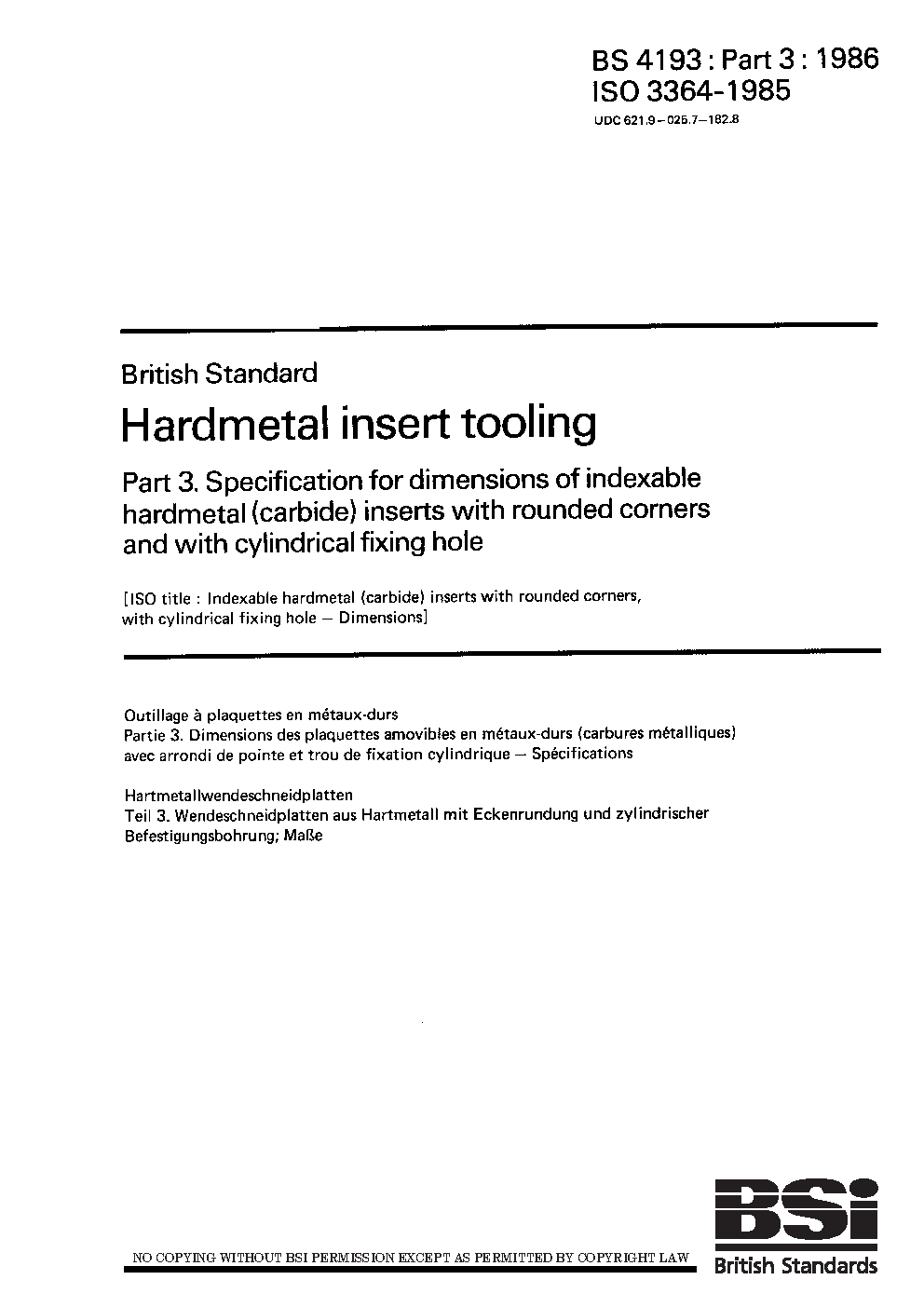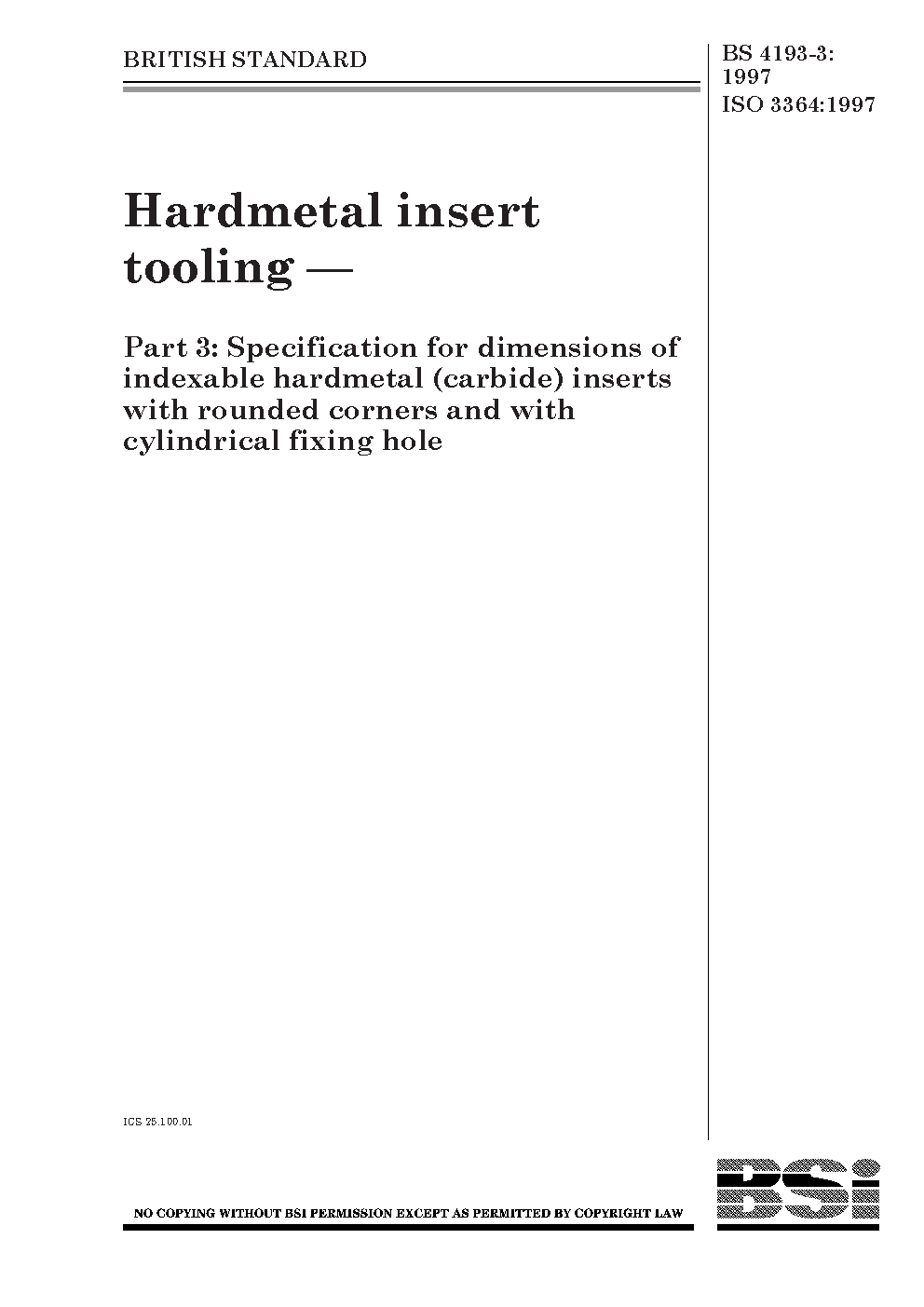 Hardmetal insert tooling Specification for dimensions indexable (throwaway) hardmetal inserts with cylindrical fixing hole