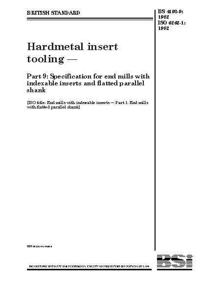 Hardmetal insert tooling Specification for end mills with indexable inserts and flatted parallel shank