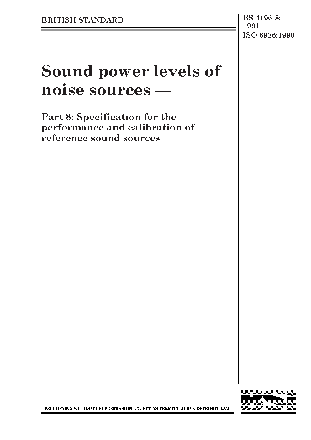 Sound power levels of noise sources Specification for the performance and calibration reference sound