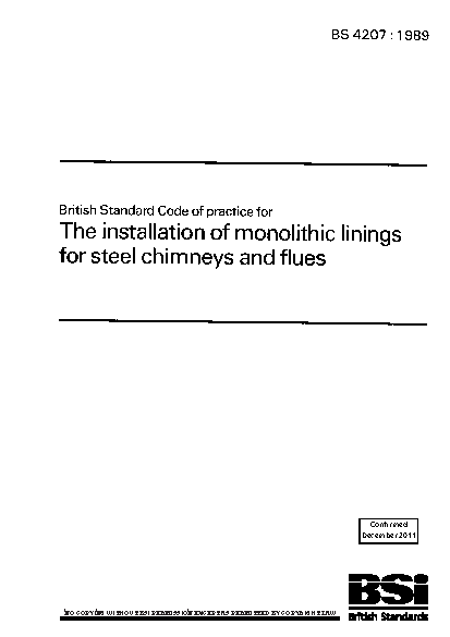 Code of practice for the installation of monolithic linings for steel chimneys and flues