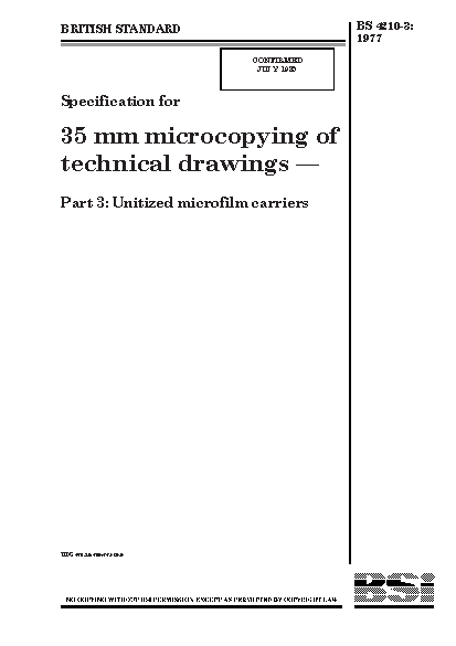 Specification for 35 mm microcopying of technical drawings Unitized microfilm carriers