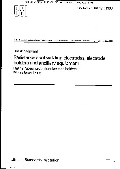 Resistance spot welding electrodes, electrode holders and ancillary equipment Specification for holders, Morse taper fixing