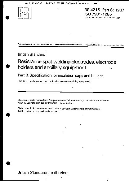 Resistance spot welding electrodes, electrode holders and ancillary equipment Specification for insulation caps bushes