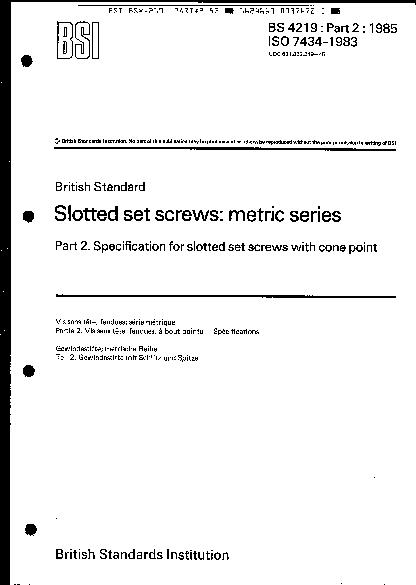 Slotted set screws: metric series Specification for slotted screws with cone point