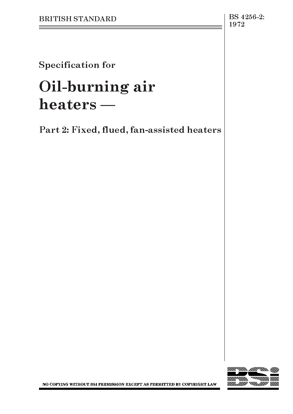 Specification for oil-burning air heaters. Fixed, flued, fan-assisted heaters