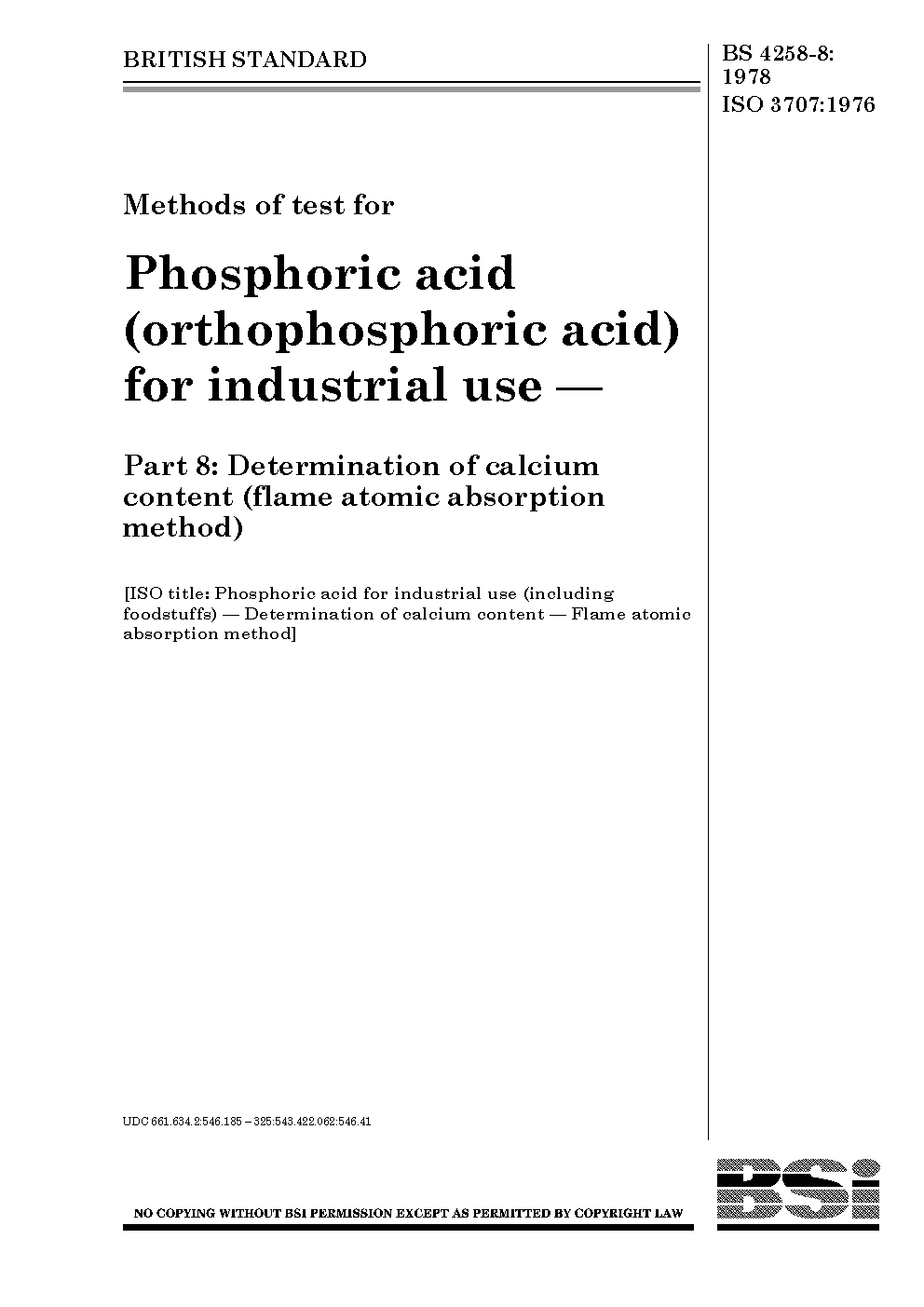Methods of test for phosphoric acid (orthophosphoric acid) industrial use Determination calcium content (flame atomic absorption method)