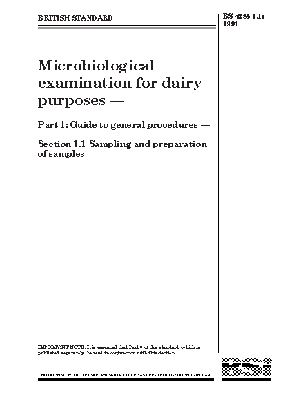Microbiological examination for dairy purposes. Guide to general procedures Sampling and preparation of samples