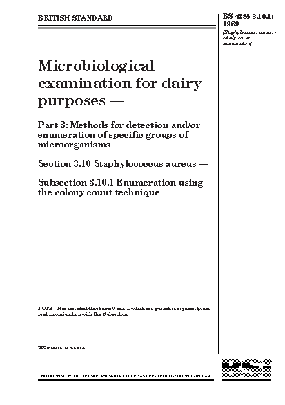 Microbiological examination for dairy purposes. Methods detection and/or enumeration of specific groups microorganisms. Staphylococcus aureus Enumeration using the colony count technique