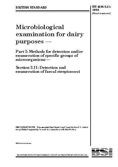 Microbiological examination for dairy purposes. Methods detection and/or enumeration of specific groups microorganisms Detection and faecal streptococci