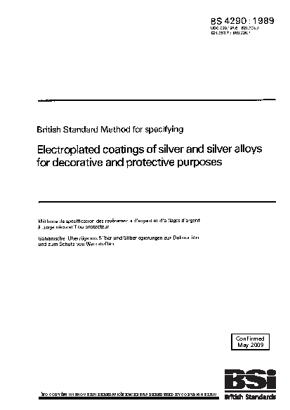 Method for specifying electroplated coatings of silver and silver alloys for decorative and protective purposes