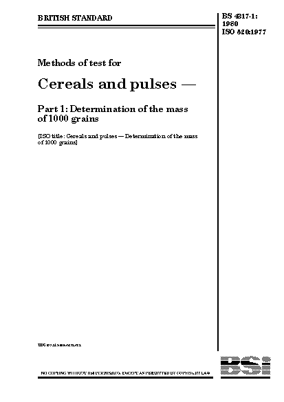 Methods of test for cereals and pulses Determination the mass 1000 grains