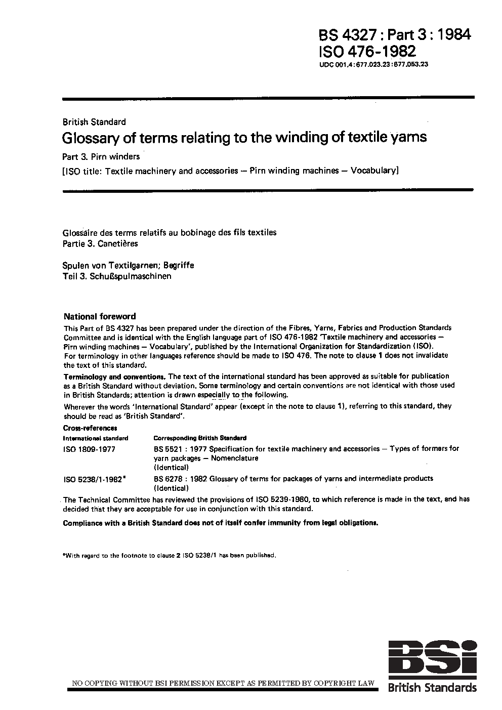Glossary of terms relating to the winding textile yarns Pirn winders