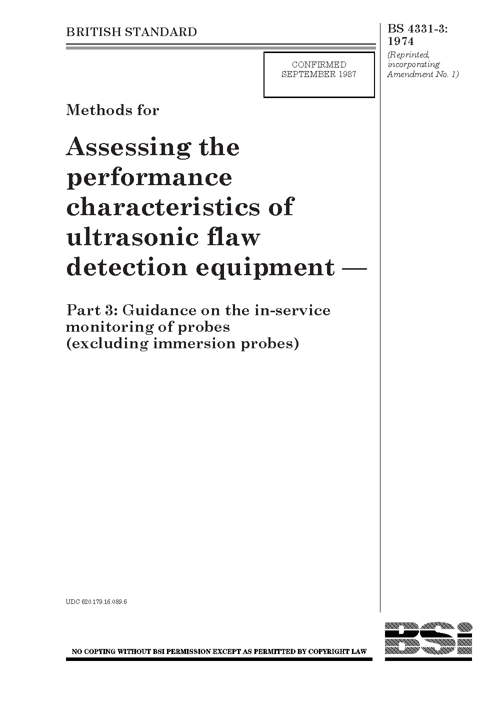 Methods for assessing the performance characteristics of ultrasonic flaw detection equipment Guidance on in-service monitoring probes (excluding immersion probes)