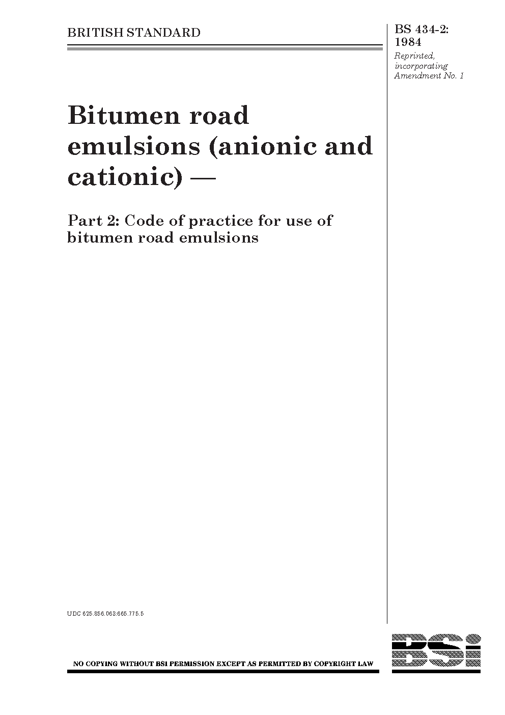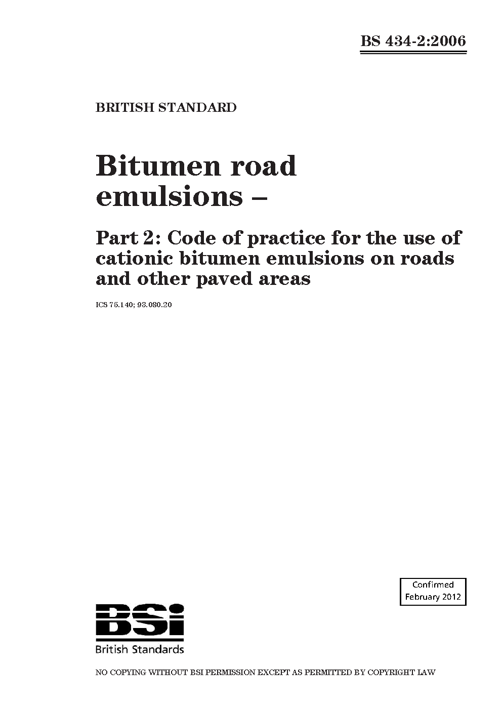 Bitumen road emulsions Code of practice for the use cationic bitumen on roads and other paved areas